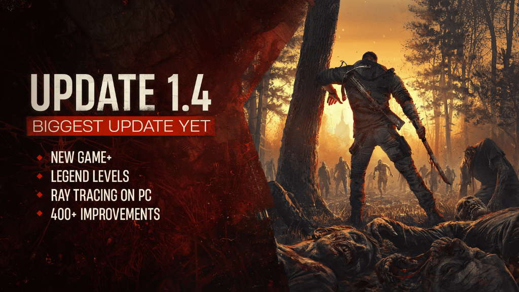 O horror de sobrevivência definitivo ficou ainda melhor! A Techland lança a Atualização 1.4, trazendo o aguardado New Game+, sistema de progressão Níveis de Lenda e visuais aprimorados com Ray Tracing. Aproveite o desconto de até 25% e enfrente os perigos de Castor Woods como nunca antes!