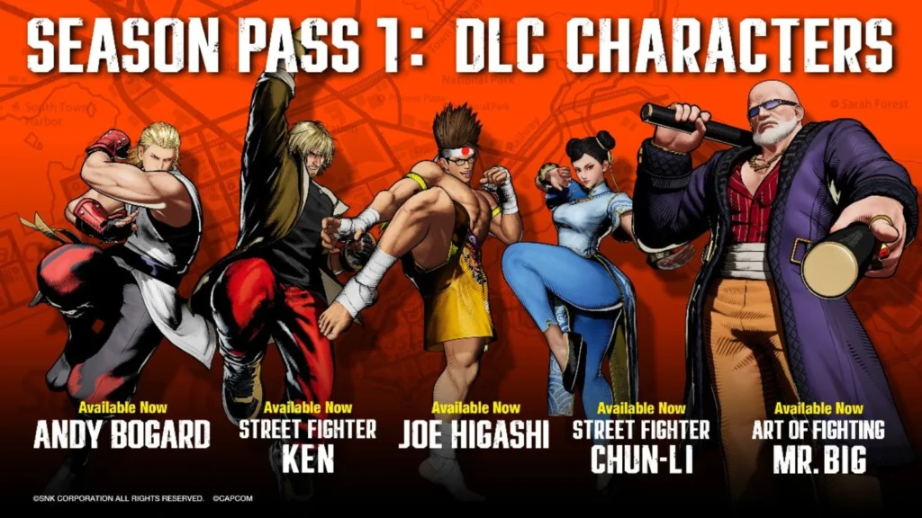 - Passe de Temporada 1: Inclui lutadores clássicos da SNK como Andy Bogard, Joe Higashi e Mr. Big.