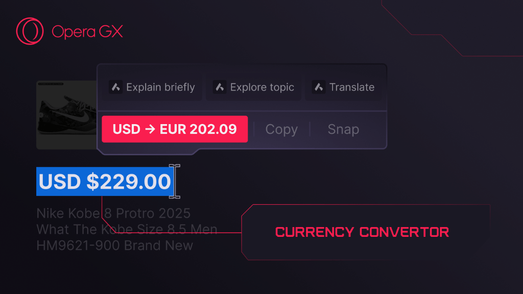 - Conversão de Moedas e Tradução Instantânea: Quer saber quanto custam ingressos de shows no exterior? Basta selecionar o valor em outra moeda e um pop-up revela o preço na sua moeda local, com a cotação do dia. Você também pode traduzir textos selecionados para seu idioma nativo, sem sair do navegador.
