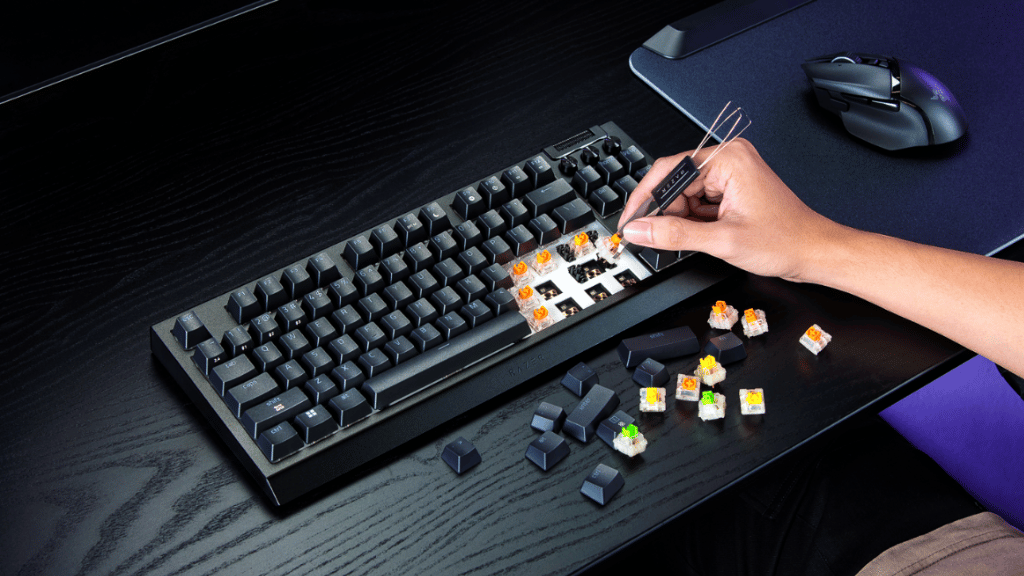 O BlackWidow V4 Tenkeyless HyperSpeed foi desenvolvido para jogadores que valorizam o desempenho e a liberdade de customização. O teclado vem equipado com switches mecânicos Razer Orange Tactile de terceira geração e é compatível com switches mecânicos de 3 e 5 pinos. Isso permite que você adapte facilmente o som e o toque de cada tecla, criando a experiência de digitação perfeita para você.